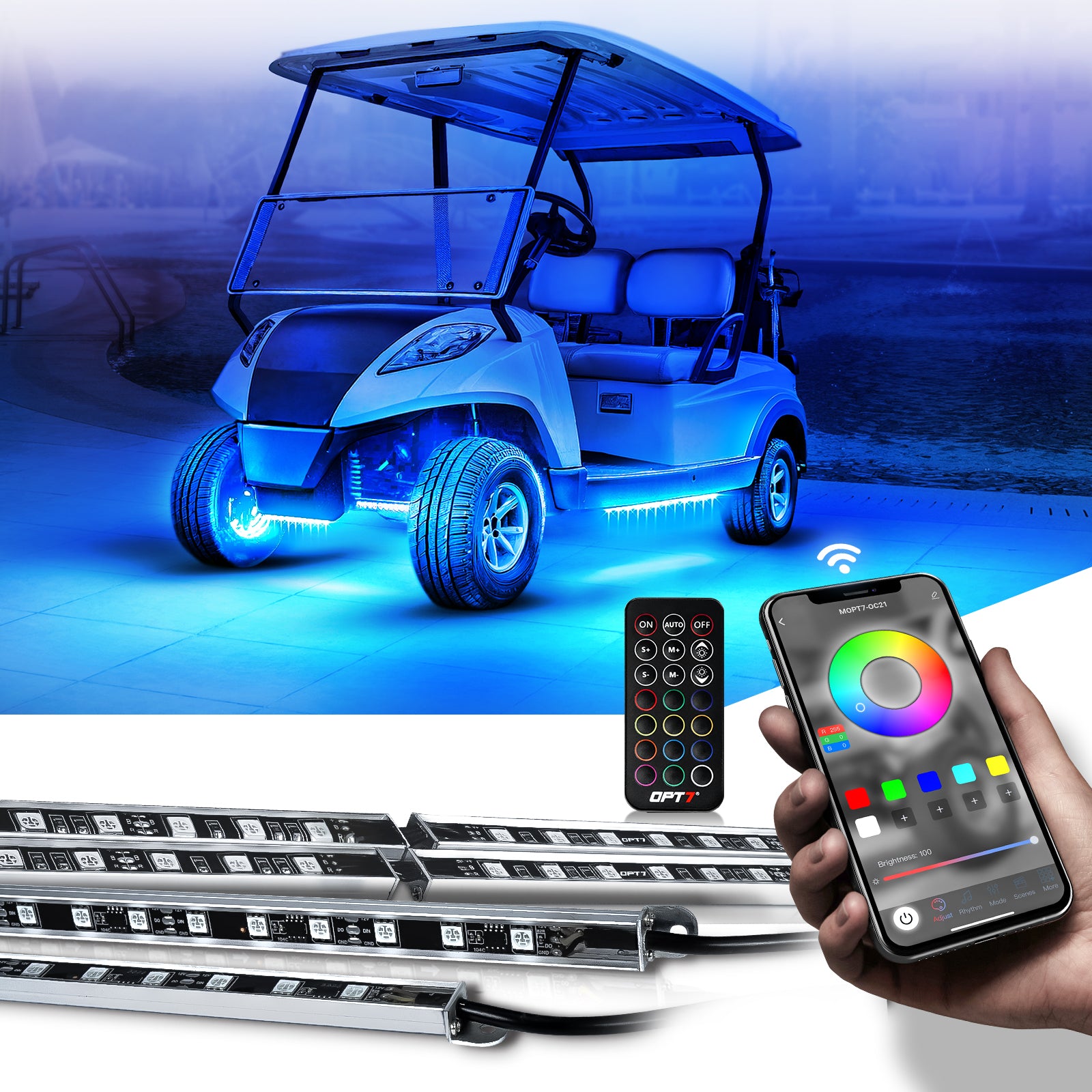 - Multi-kit sync: Control up to 4 OPT7 GLOW kits from one APP for a unified lighting experience.