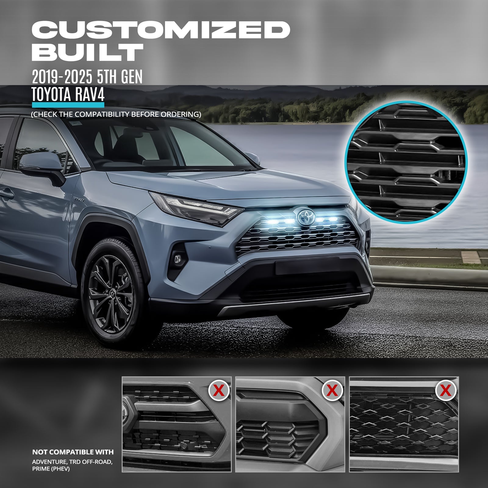 Perfect Fit for 2019-2025 Toyota RAV4 5th Gen Designed exclusively for Toyota RAV4 2019 2020 2021 2022 2023 2024 2025 models, these LED grille lights integrate seamlessly into the front grille without modifications.